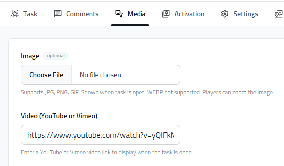 With the picture files, use JPG for task media and SVG for pin icons. If you use a high-quality PNG file with a few thousand pixels on each side, expect your game to be heavy.