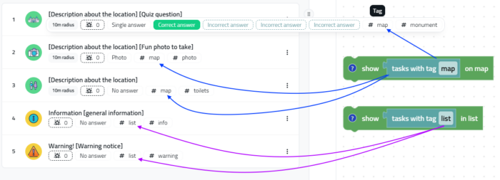 You can add more by yourself. If you add the tag “map”, then they’ll appear on the map. Same story for the tag tasks. Here we explain how to add tags to a task.