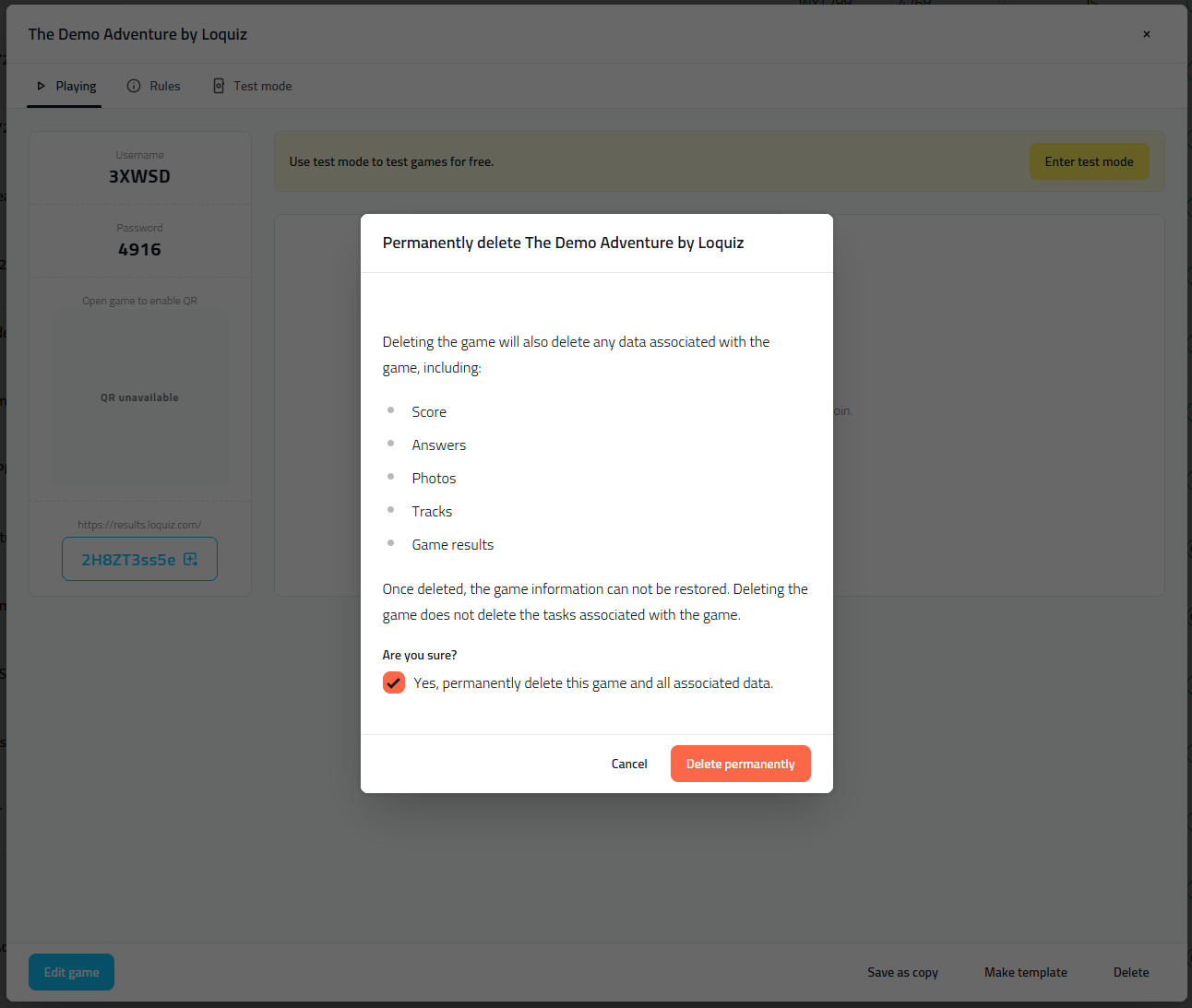 Deleting games in bulk is not an option anymore and you can only delete them one by one. In order to delete a game, first you need to ‘Close’ it. Then press ‘delete’, click on the box that you are sure and then it will be deleted once you press the button.